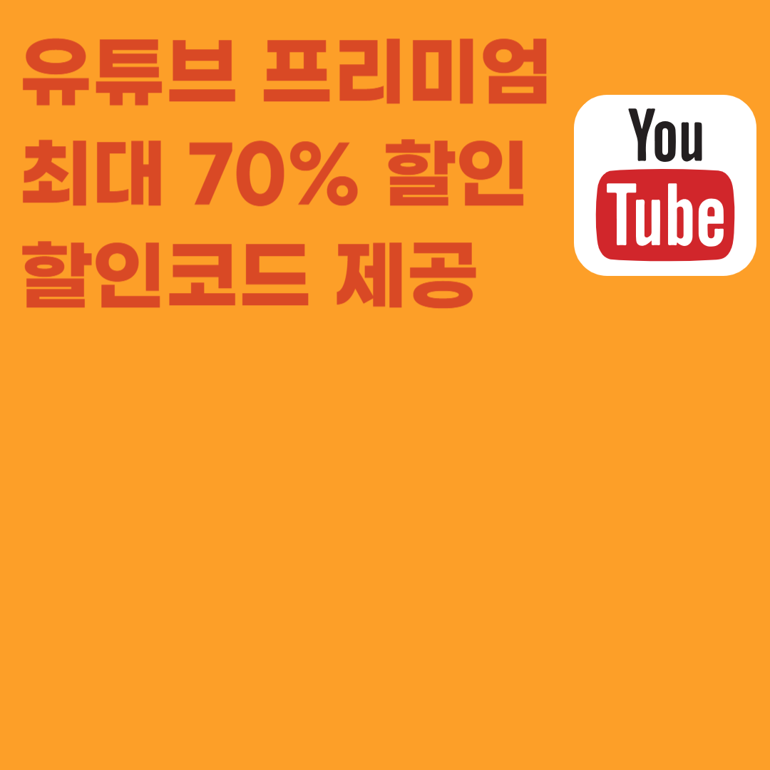 광고없이 동영상 시청, 유튜브 프리미엄 최대 70% 할인 가격으로 보기, 할인코드 입력하면 추가 10% 할인되요...
